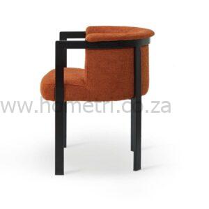 The Jomo Dining Chair brings your dining space strong design and everyday comfort. Upholstered in bold rust-coloured panels and supported by a black steel frame, it’s built to stand out without taking over the room. Whether you’re refreshing a space in Cape Town or adding new seating in a Johannesburg home, the Jomo is a reliable choice for daily use or entertaining guests.