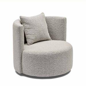 The Jose Tub Chair adds strong shape and comfort to your space. Upholstered in cream and black boucle, it features a curved tub form that supports relaxed seating. The softly padded seat and back make it suitable for living rooms, bedrooms, or reading corners. A matching scatter cushion is included, making this chair a practical choice for everyday use while still standing out as a statement piece.