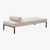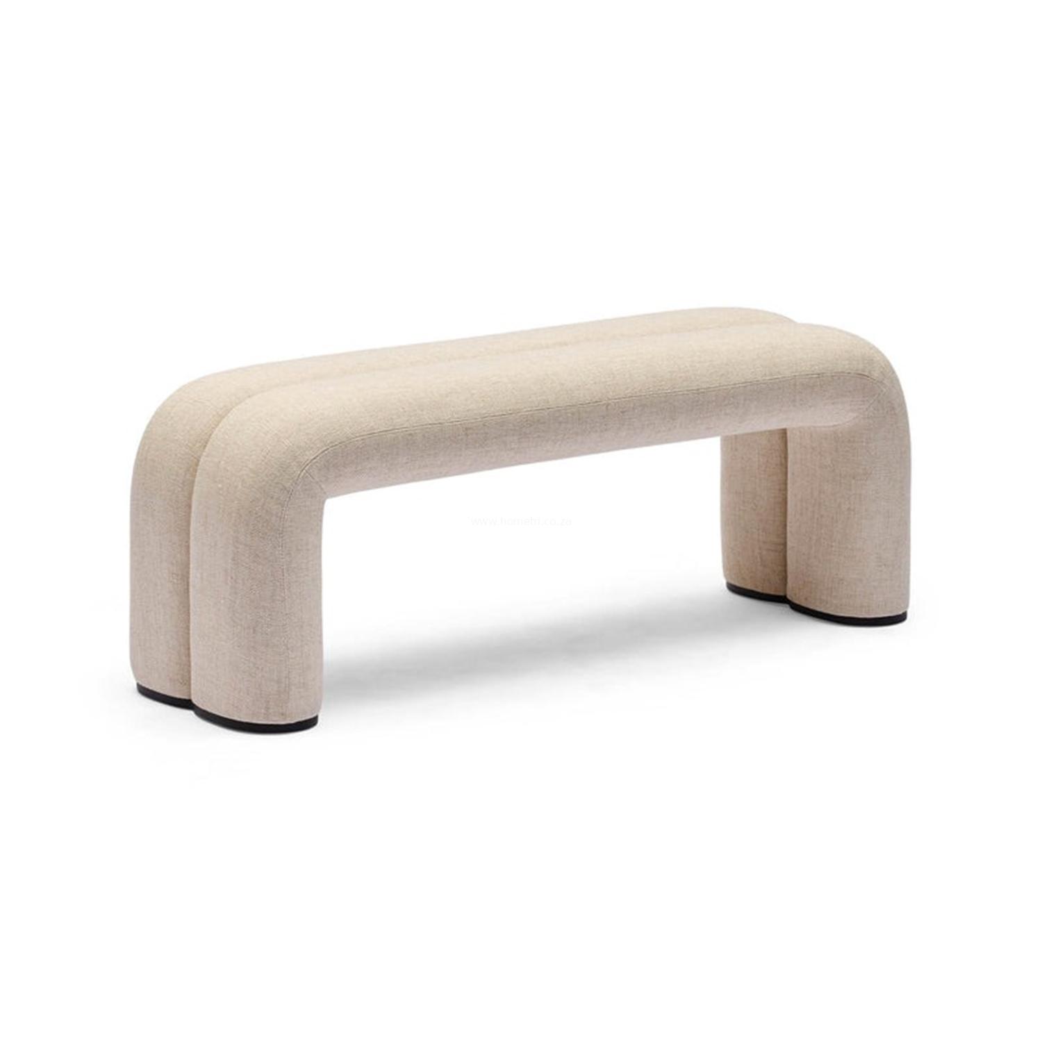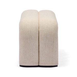 The Madras Ottoman features a sculpted, contemporary form defined by soft curves and a clean profile. Upholstered in a linen blend and supported by solid wood construction, it is sized to sit comfortably at the end of a bed or function as an accent piece in a living area. Use it for added seating, a footrest, or as a practical surface in everyday spaces.