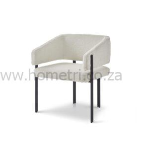 The Tara Dining Chair brings your dining space a bold and comfortable design. With its curved backrest, sloped armrests, and sturdy black steel legs, this chair adds a striking presence without trying too hard. The boucle fabric finish offers a soft texture, while the strong frame ensures it holds up to everyday use. Whether hosting dinner in a Cape Town apartment or furnishing a Johannesburg family home, the Tara Chair fits right in with its mix of function and style.