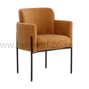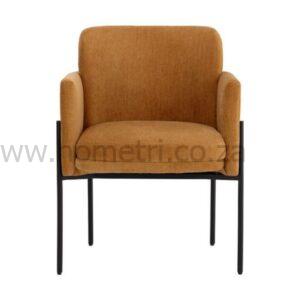 The Taze II Dining Armchair brings comfort and clean design to your dining space. Upholstered in a softly textured Danny Amber fabric, the chair features a wide seat and supportive arms. The exposed black metal legs offer solid support and contrast well with the warm upholstery. Whether you’re hosting friends in Cape Town or updating a dining area in Johannesburg, this chair fits right in with its modern, easy-going design.